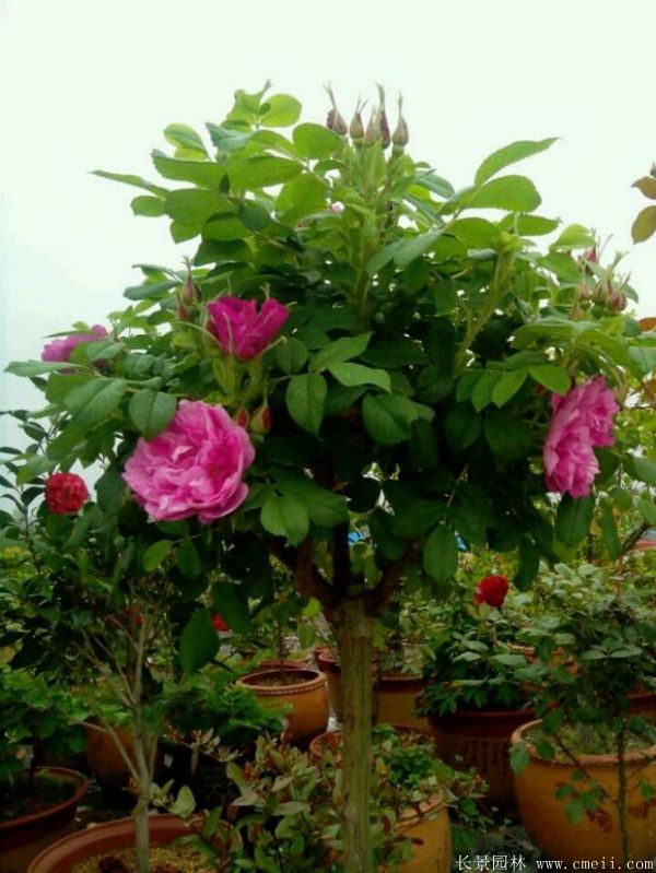 玫瑰,是一種落葉中小喬木或是一種落葉灌木,棵型總高2.5~12米左右,規格直徑小的有2cm3cm4cm5cm6cm7cm粗的有直徑8cm10cm12cm15cm等等,新芽早春3月長出來,晚秋苦霜脫落。種類不同,葉片,花蕾,樹枝也有點細小的區別,玫瑰繁衍有扦插,嫁接,也可以種子繁育。