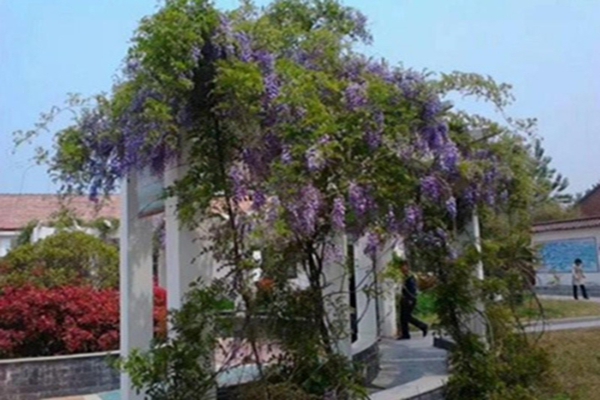 纏繞造型紫藤塑造造型的時候,在幼苗初期就要提前制作花架,等待植物攀爬后按照花架生長可以起到很好的觀賞價值,纏繞造型要根據生長速度來決定,纏繞時要手法要輕一些,避免對植物的莖部造成傷害。